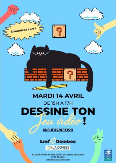 Le mardi 14 avril, de 15h à 17h, les enfants à partir de 8 ans sont invités à participer à l’animation « Dessine ton jeu vidéo », organisée en partenariat avec notre conseiller numérique.